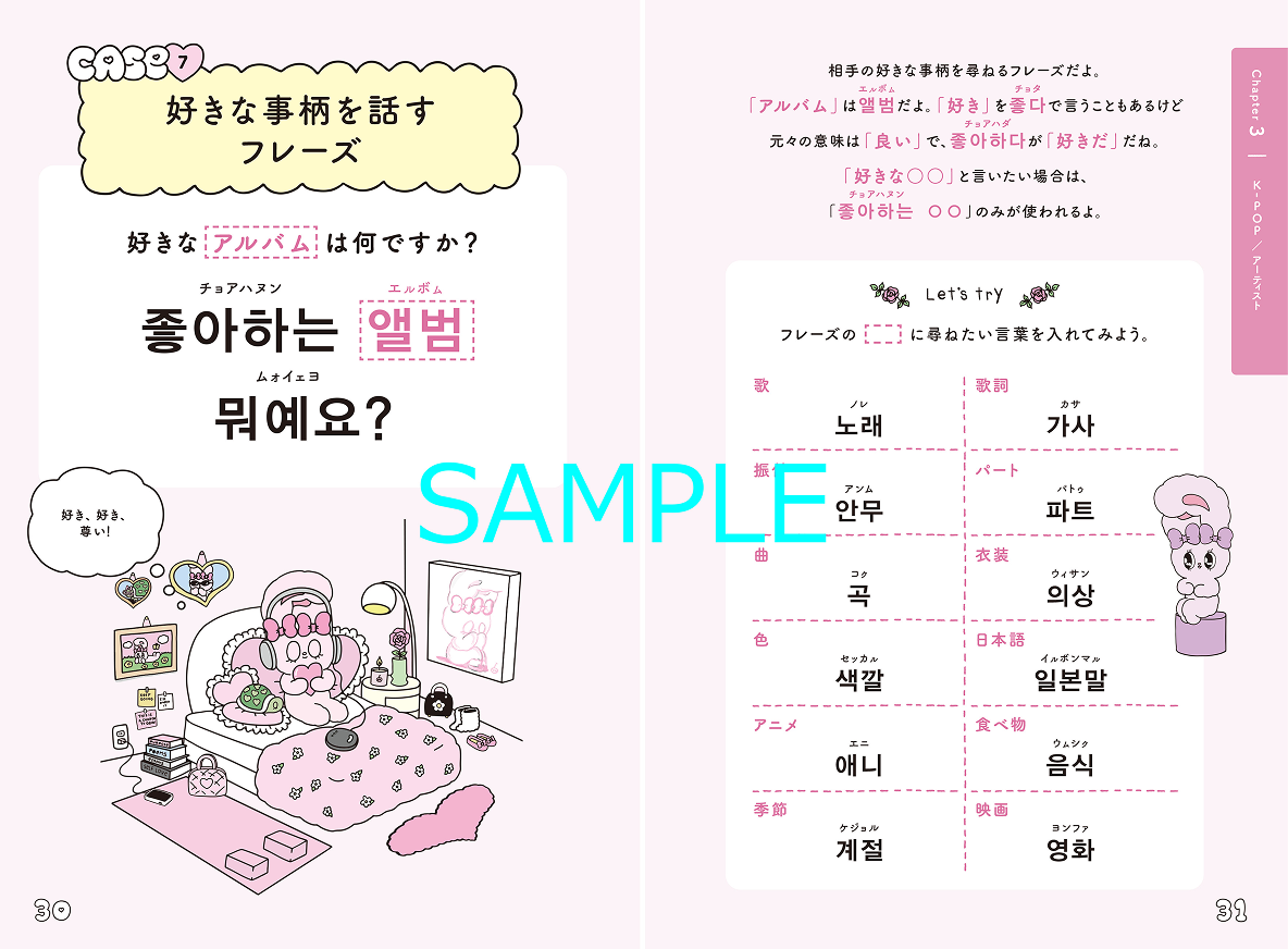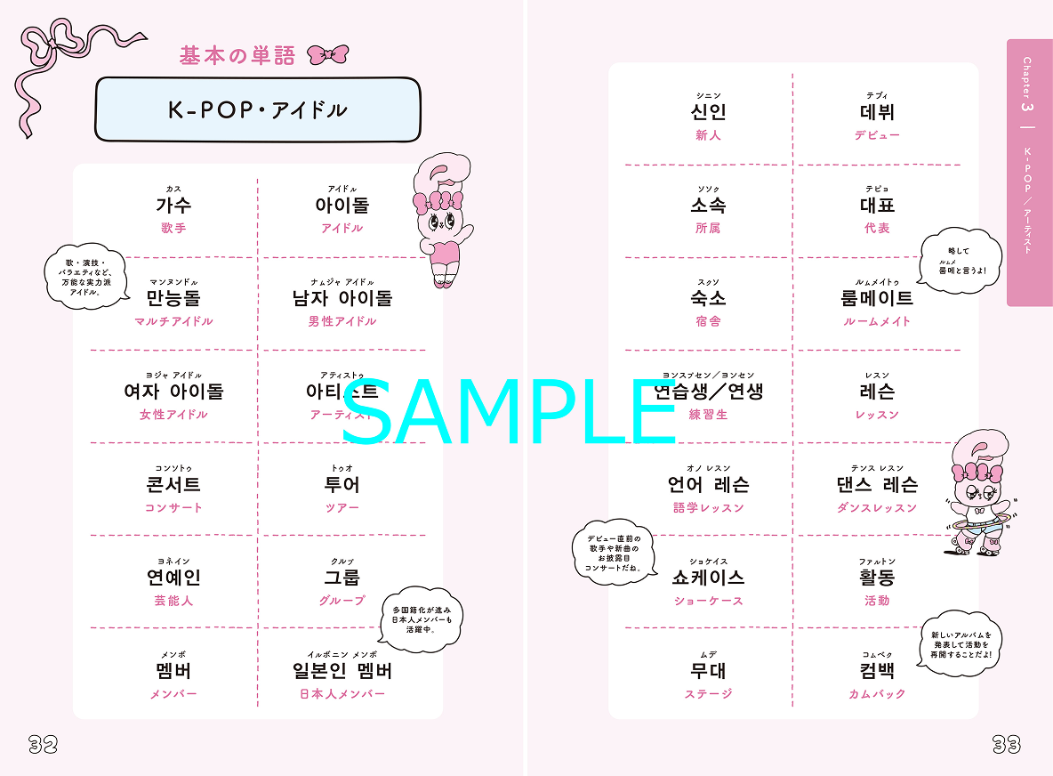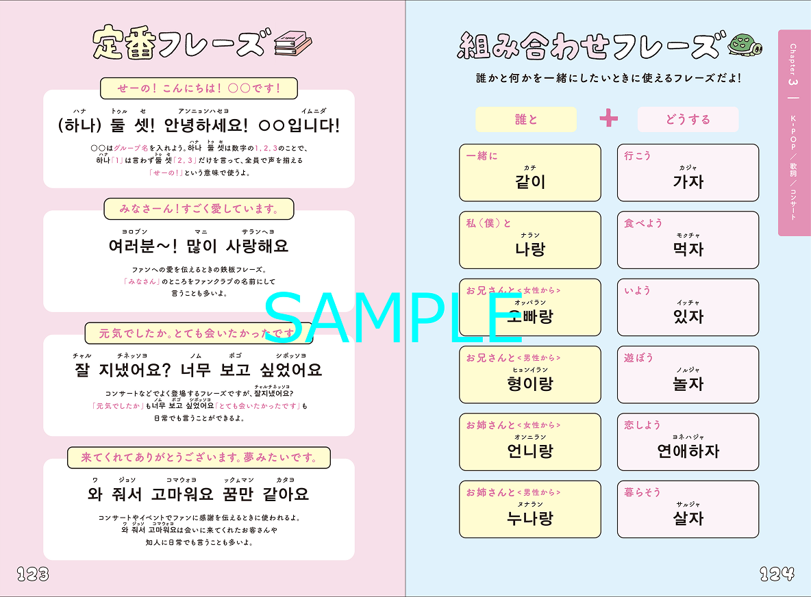 SNS、ファン活動、旅行など様々なシーンで使えるフレーズを1000語以上収録。