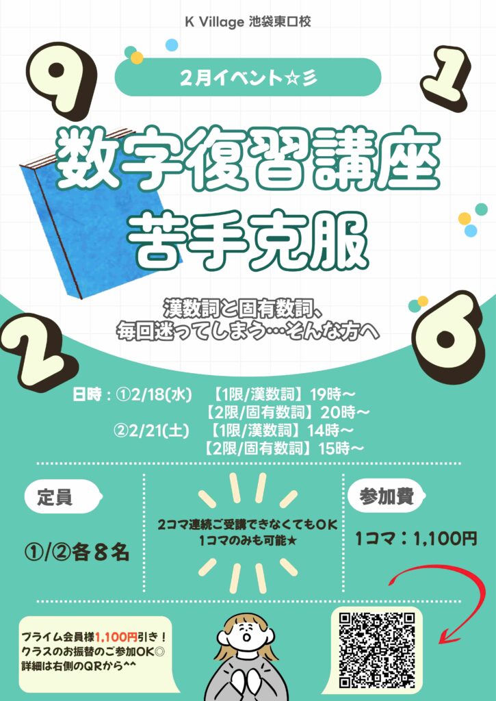 池袋東口校のブログ | 【池袋東口校】2月の校舎イベントは数字復習講座!!
