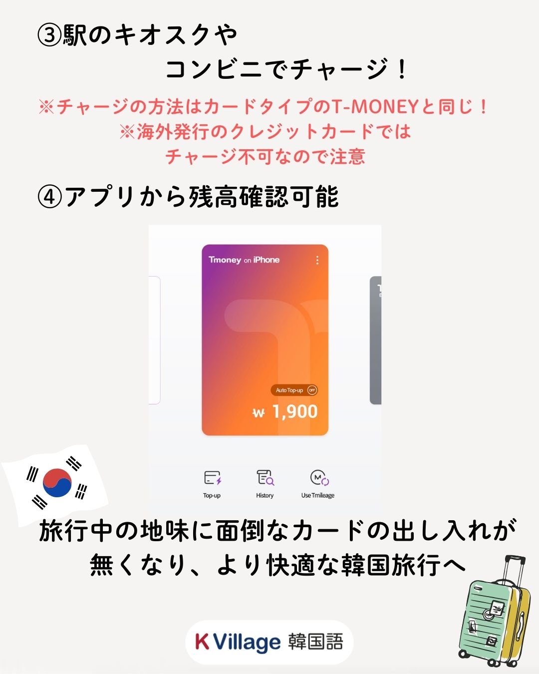 韓国で最も普及している交通系ICカード「T-money」を、スマホのアプリで利用できるようにしたものです💳