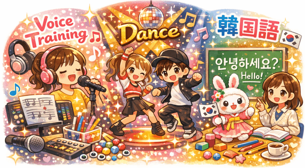 たとえば、「韓国語を話せるようになって、推しのコンサートに行きたい」「歌が上手くなって、ステージで披露したい」 そんな夢を持った生徒さんたちが、キラキラと輝きながら通っている教室です。