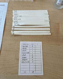 次に、香水のコンセプトを書き、1〜40番の中から7つの香りを選ぶという工程へ✨
