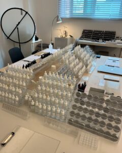 席に着くと、目の前には 1〜40番までの塗り香水と液体香水がずらり…!