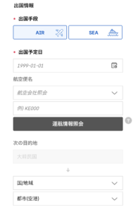 ③入国・出国情報、入国目的を入力