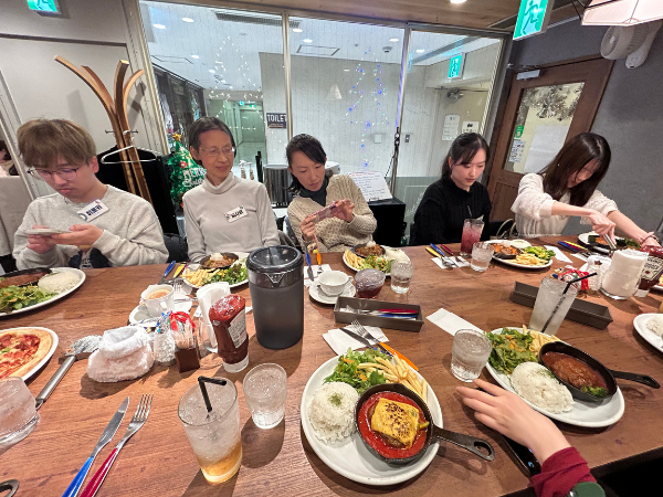 ランチプレートやピザを注文し、皆さんでお話をしながら楽しく食事や交流を楽しみました~!