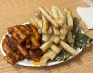 キンマリやエビの天ぷらをトッポギに浸して食べると、これがもう絶品で…