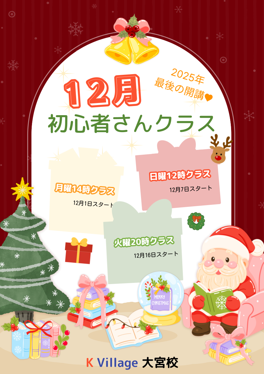 12月は日中やお仕事終わりなど、様々な時間帯で通えるクラスとなります🎵