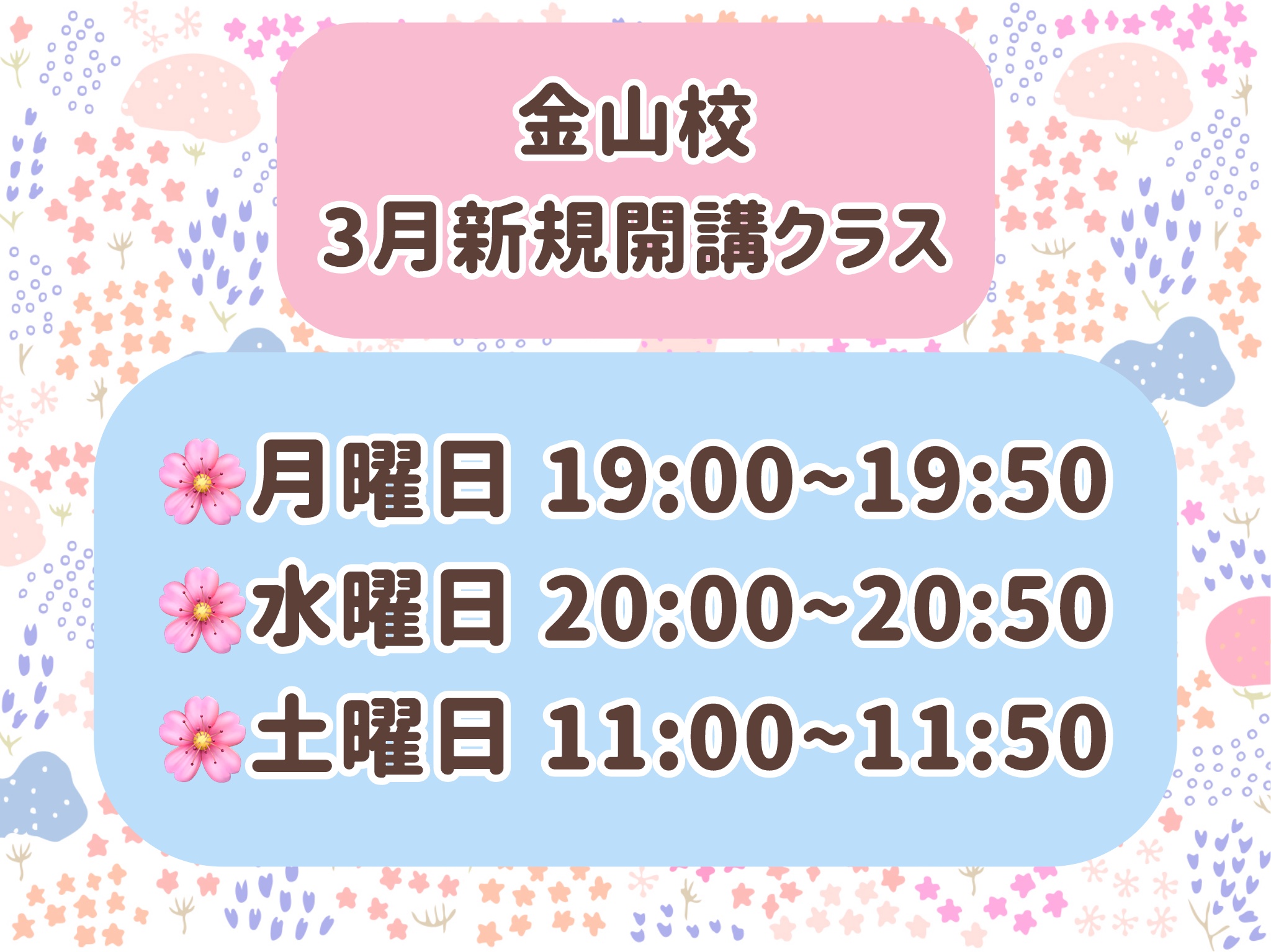 金山校では、3月にスタートする新規開講クラスの募集を開始いたしました🍀