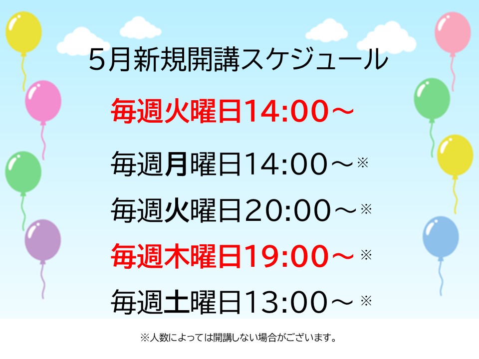 毎週火曜日14:00~、毎週木曜日19:00~開始のクラスで絶賛募集中です♪