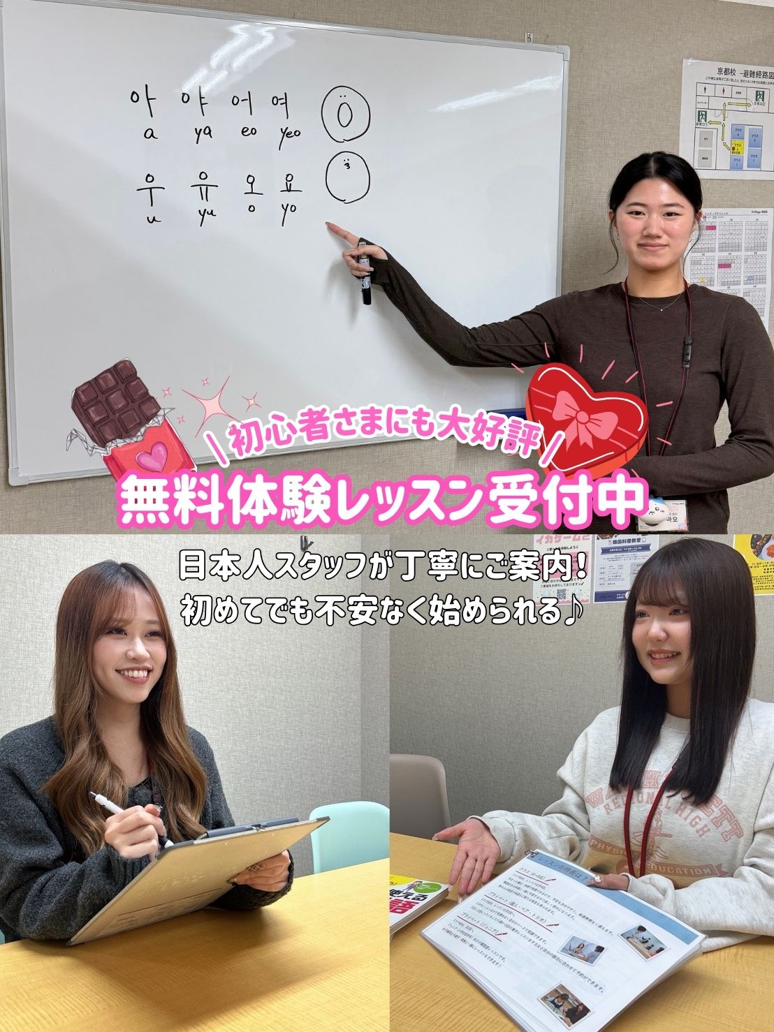 お気軽にK Village 韓国語「京都校」の無料体験レッスンを受けて、素晴らしい韓国語学習の世界に飛び込んでみてください。