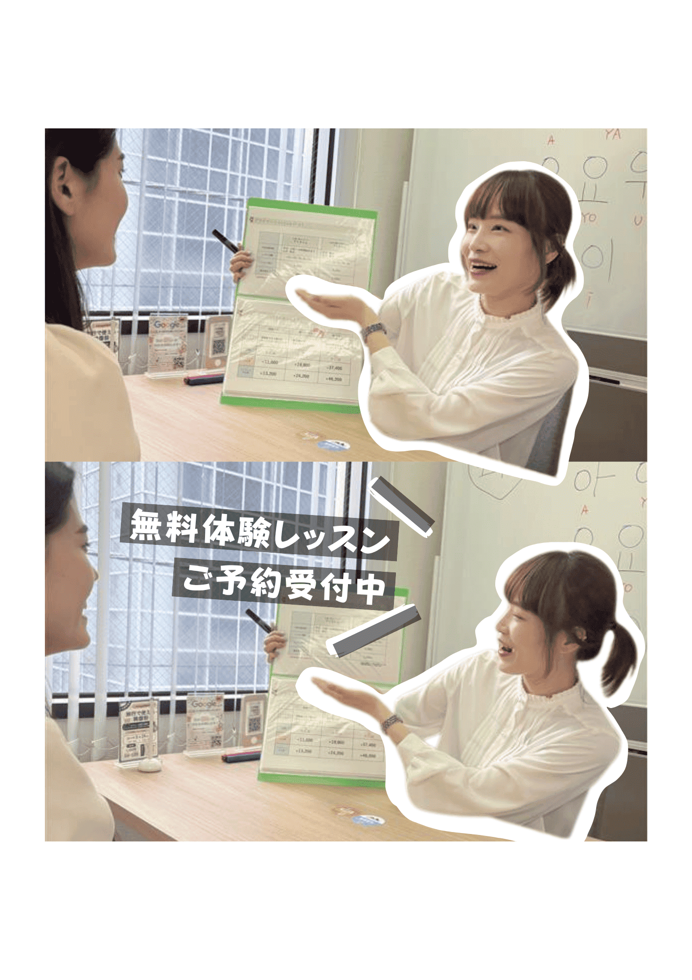 初心者の方向けの無料体験レッスンは簡単な発音から読み方までを体験レッスン!ちょっとした単語も読めるようになるかも。(15分程度です)