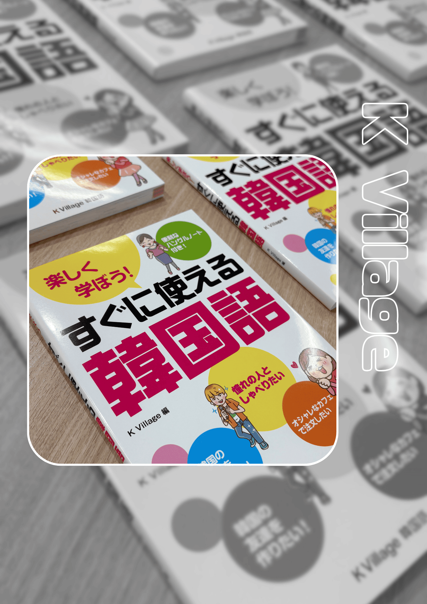K Villageオリジナルテキスト「すぐに使える韓国語」を主に使用しています!1冊目を終えると旅行会話が、2冊目を終えるとある程度の日常会話が可能になります☺️