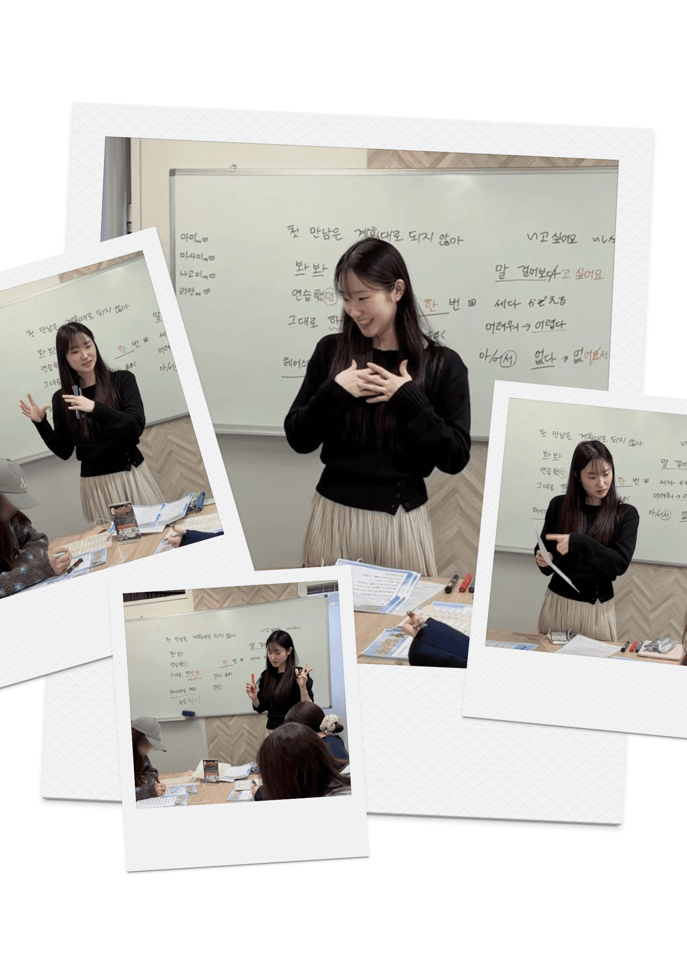 韓国語は日本語と似ている部分が多いので、約半年~1年でコミュニケーションをとれるようになる方が多いです♪独学ではなかなか難しい発音や細かいニュアンスなどは、日本語堪能な講師が丁寧に教えます! 特にプライベートレッスンでは韓国人講師と1:1で学習ができるので会話力も伸びますよ✨