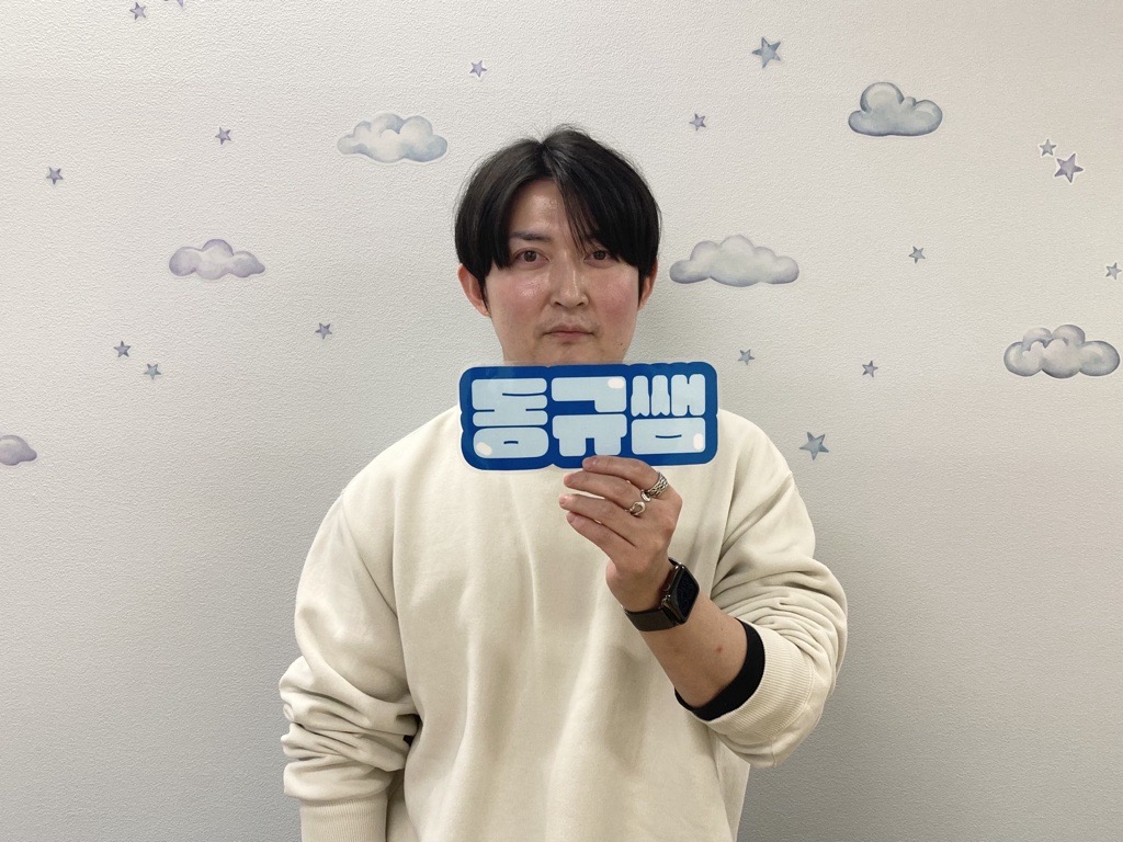 ドンギュ先生は日本の大分県に親戚がいるとのことで、その親戚のお子さんと一緒に遊びたくて日本語の勉強を本格的に勉強を始めたそうです!