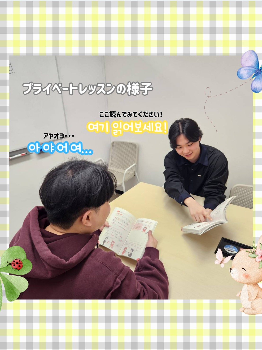 韓国人講師と1:1で集中的に学べる「プライベートレッスン」が人気です!全く初めて・初心者さんは"基礎をしっかりと身に付ける"ことができるので特におススメです✨アウトプットもたくさんできるので聞き取りや会話力を伸ばしたい方にもピッタリ◎「早く話せるようになりたい!」「たくさん会話練習したい!」そんな方はぜひ無料体験レッスン時に、「プライベートレッスン」をご希望である旨をお伝えください^^