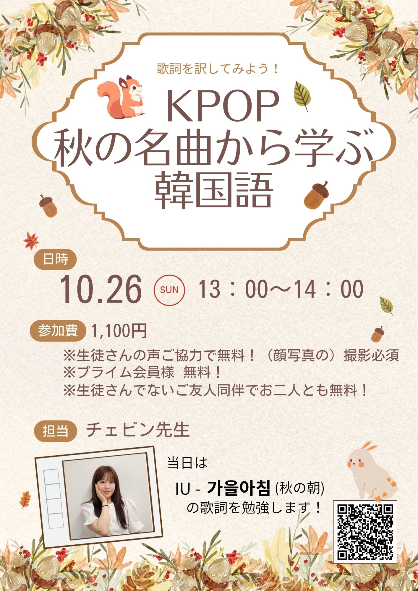 10月校舎イベント【KPOP秋の名曲から学ぶ韓国語】お申込みはコチラ
