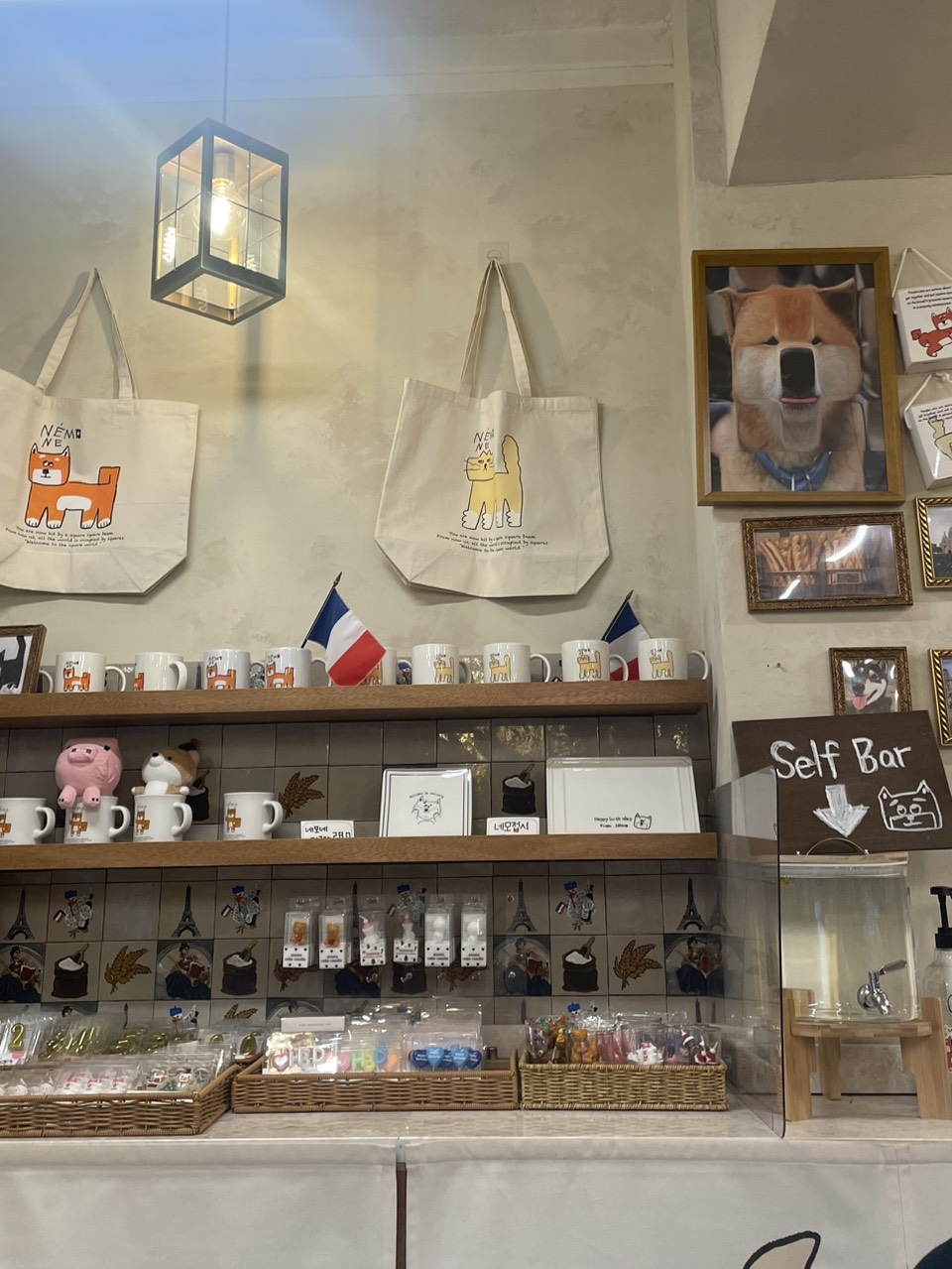 店内にも柴犬がたくさん!メニューも飾りもすべて四角!네모(ネモ)な柴犬がユニークで目立っていました🐶