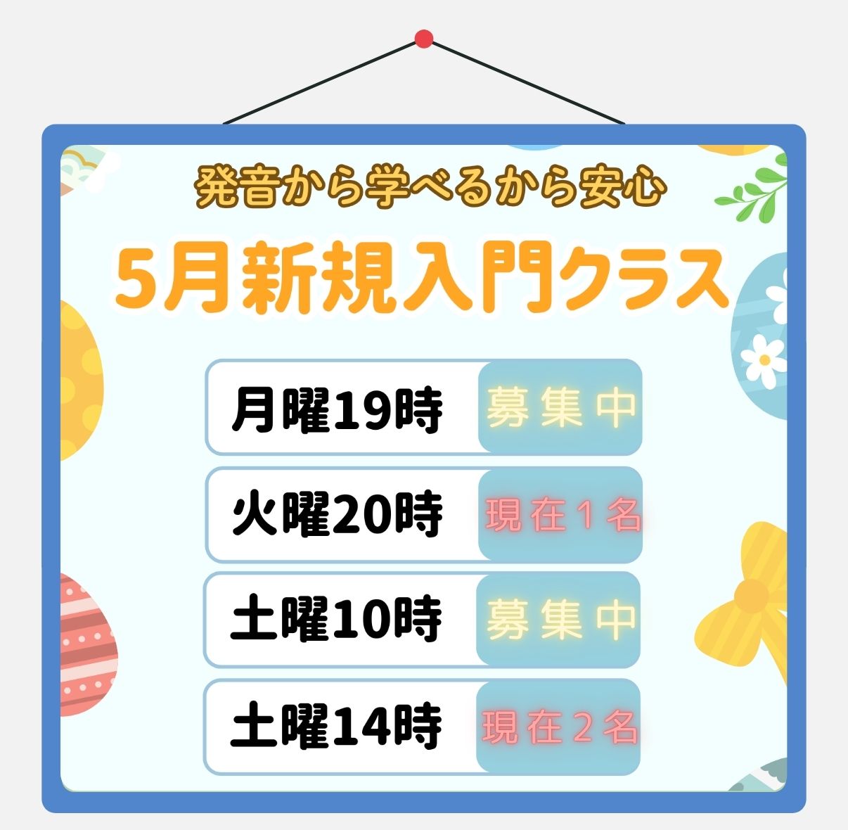 初心者の方向けの無料体験レッスンは簡単な発音から読み方までを体験レッスン!ちょっとした単語も読めるようになるかも。(15分程度です)