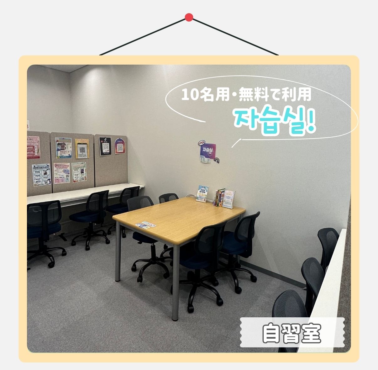 10名以上ご利用いただける広さ✨色々な韓国語のテキストが5冊以上!