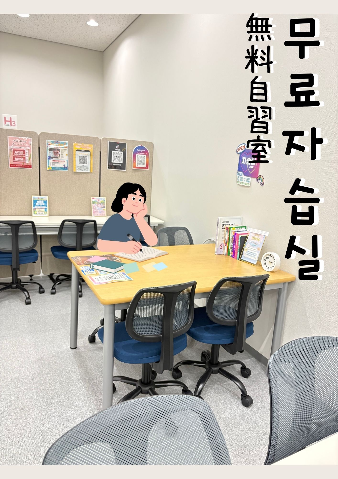 10名以上ご利用いただける広さ✨色々な韓国語のテキストが8冊以上!