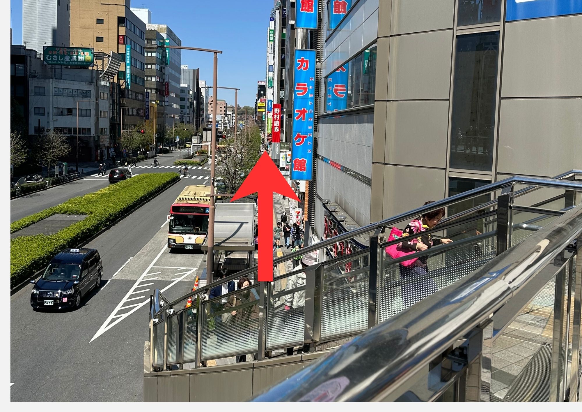 JR八王子駅の北口を出たら、八王子駅前のロータリーをそのまま直進し、交差点の右側に見えるカラオケ館とセブンイレブンの方へ向かってください。