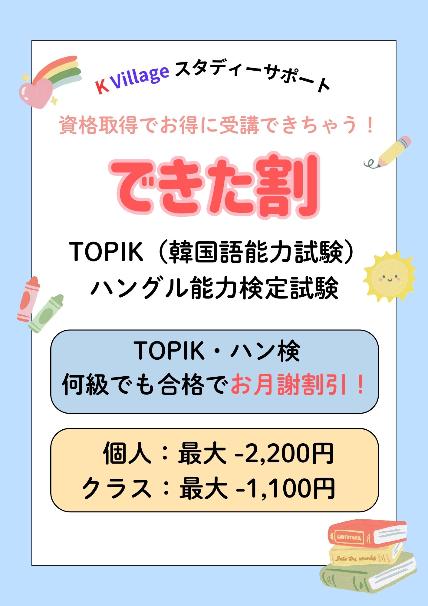 TOPIK級別単語帳や活用シートなど、学習サポート資料が充実! 詳しくは受付まで♪