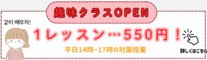 | 価格で選ぶなら!! | クラスレッスン | 550円~ (1レッスン) |