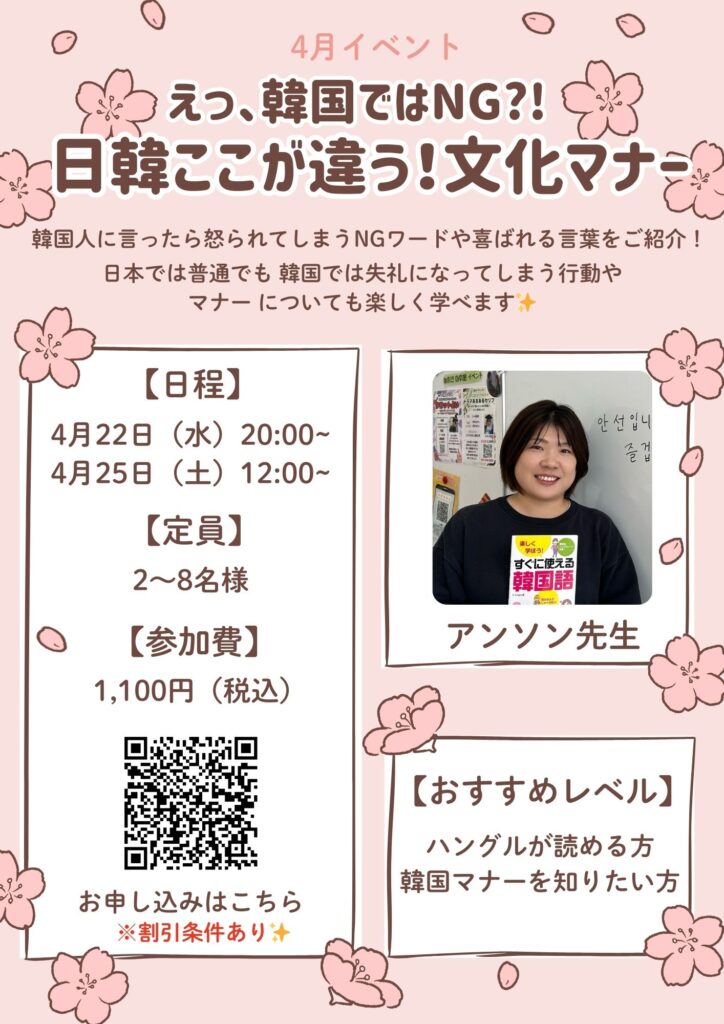 🌸4月イベント【日韓ここが違う!文化マナー】