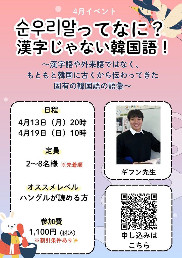 🍓4月イベント【순우리말ってなに?漢字じゃない韓国語!】