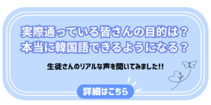 上達が早い方は個人レッスンでは3カ月、クラスレッスンでは6カ月で韓国旅行会話が身に付きます^^