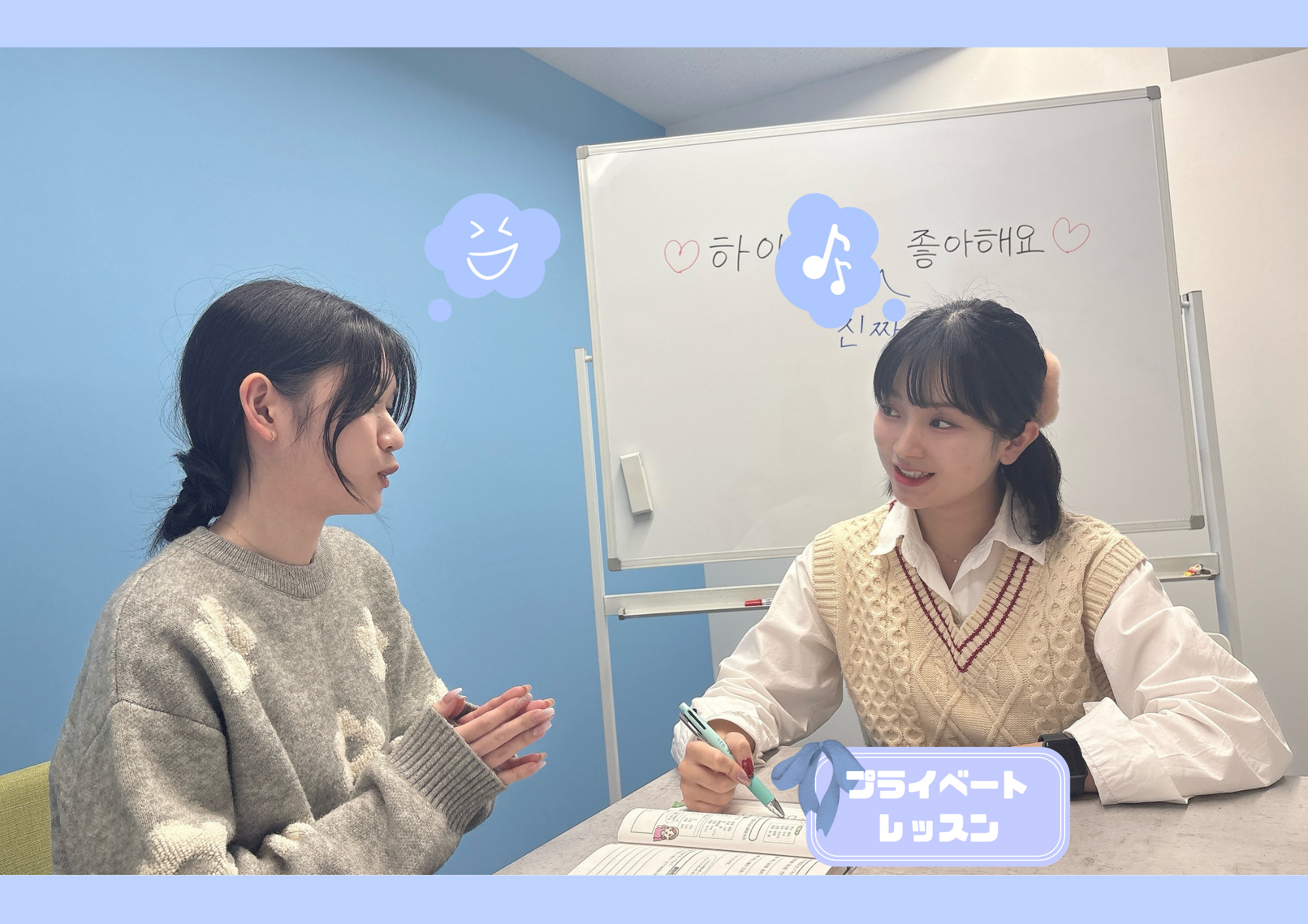 会話ベースの授業が受けたい、ドラマのセリフを覚えたい、KPOPの歌詞が知りたい、TOPIK(韓国語能力試験)の対策がしたい、韓国語でフリートークをしたいなど、授業内容は何でもOKなのもプライベートレッスンならでは!