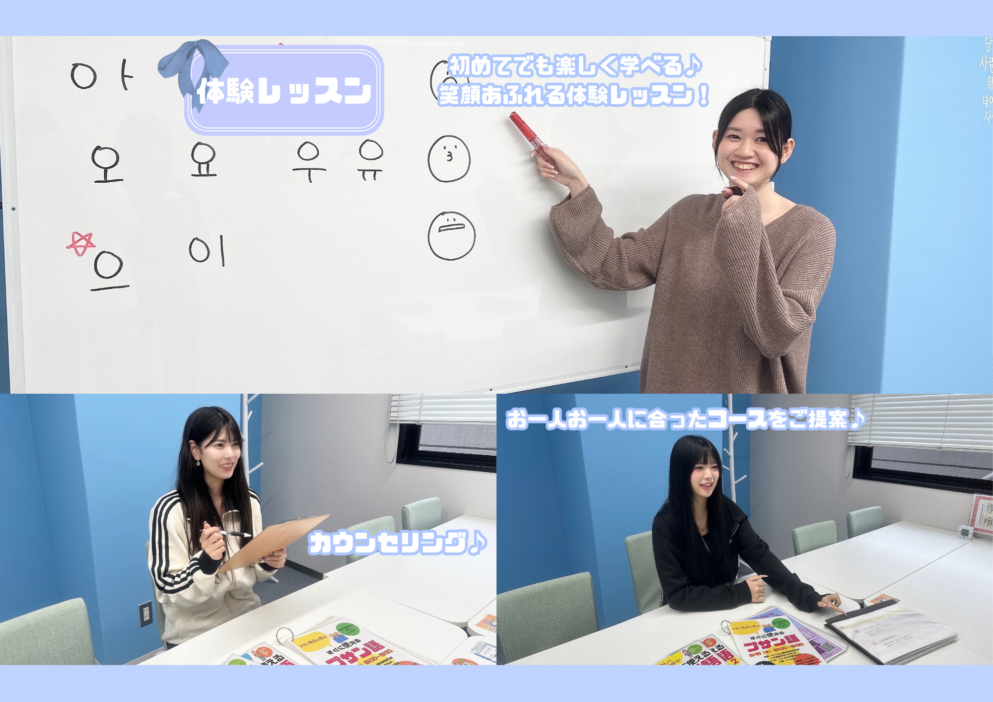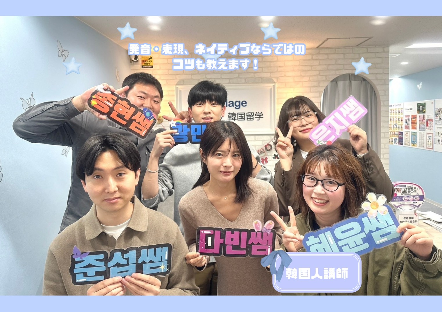 韓国語未経験からスタートされる生徒様が80%以上となります^^ 講師は若くフレンドリーな韓国人講師となりますので質問もしやすいです♪
