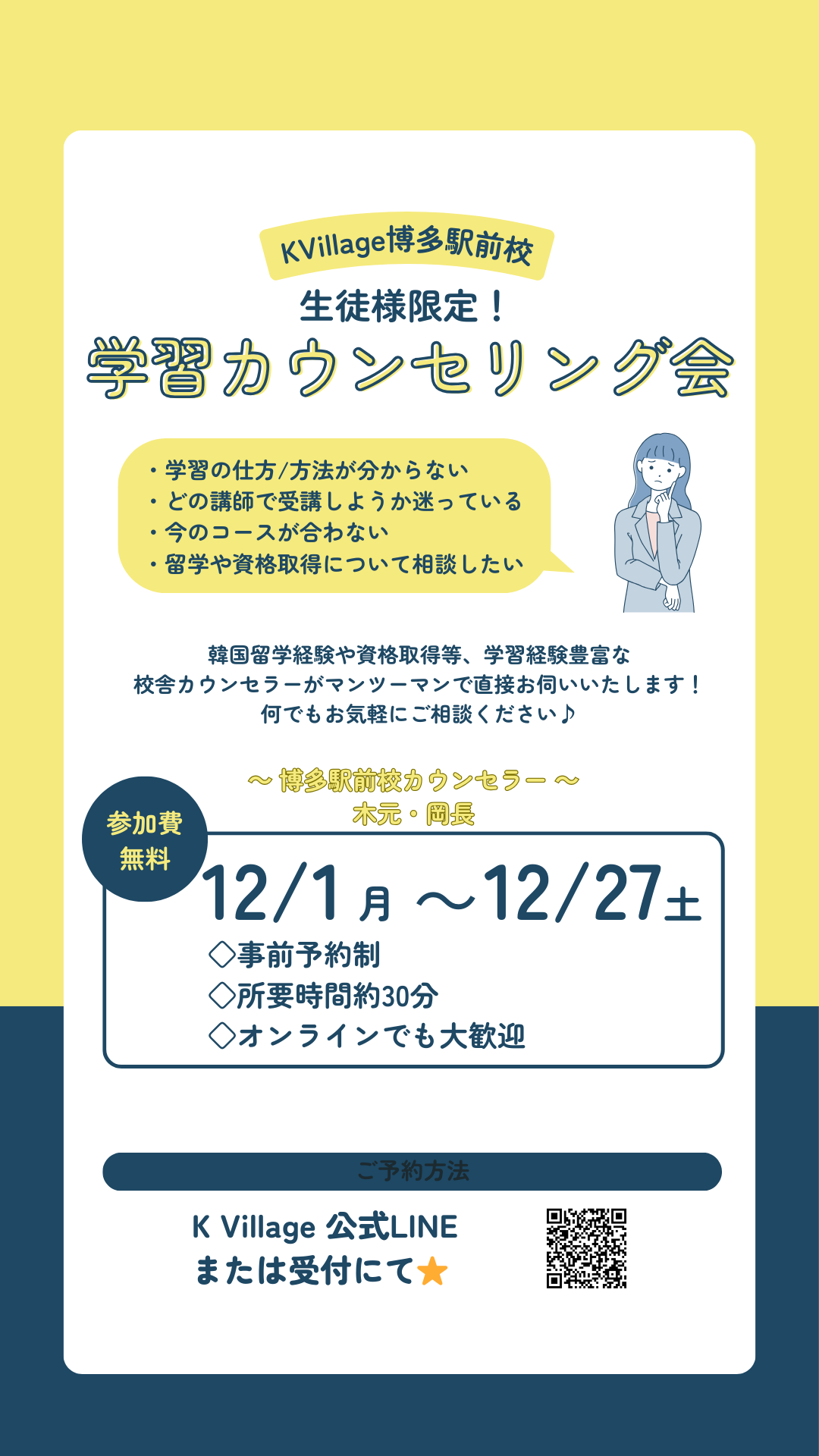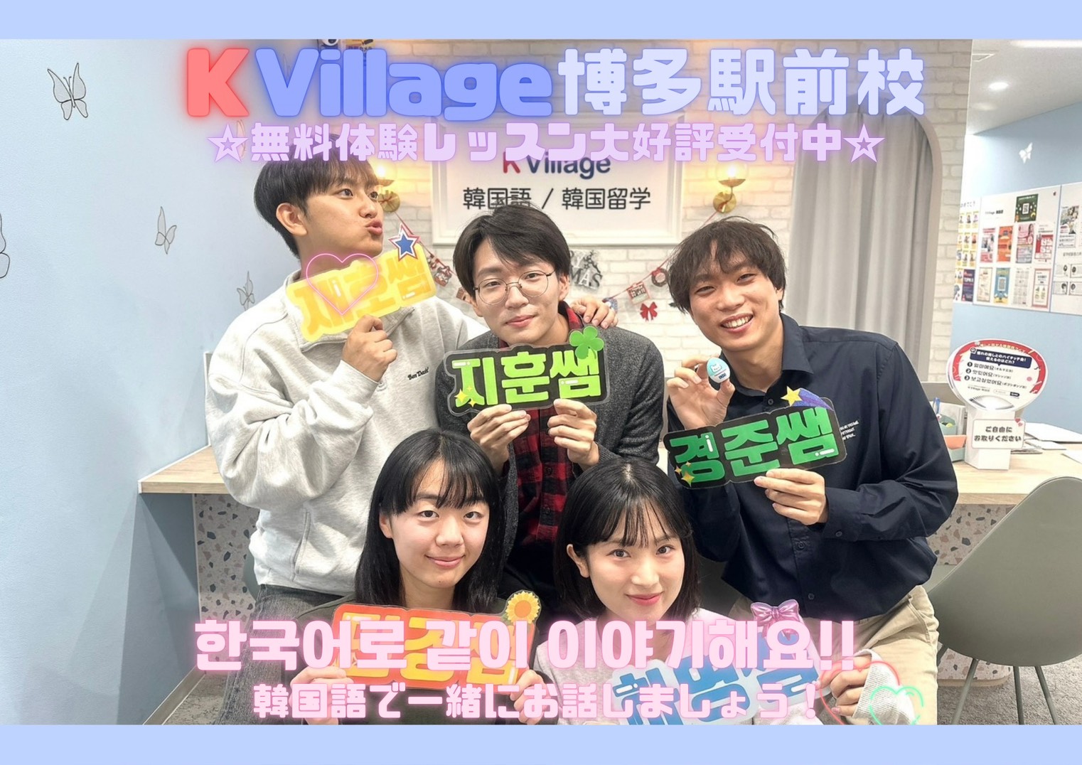 「本格的な韓流文化を感じながら博多で韓国語を学びたい!」そんな方におすすめなのは、日本最大級の韓国語教室K Village 韓国語 博多駅前校。