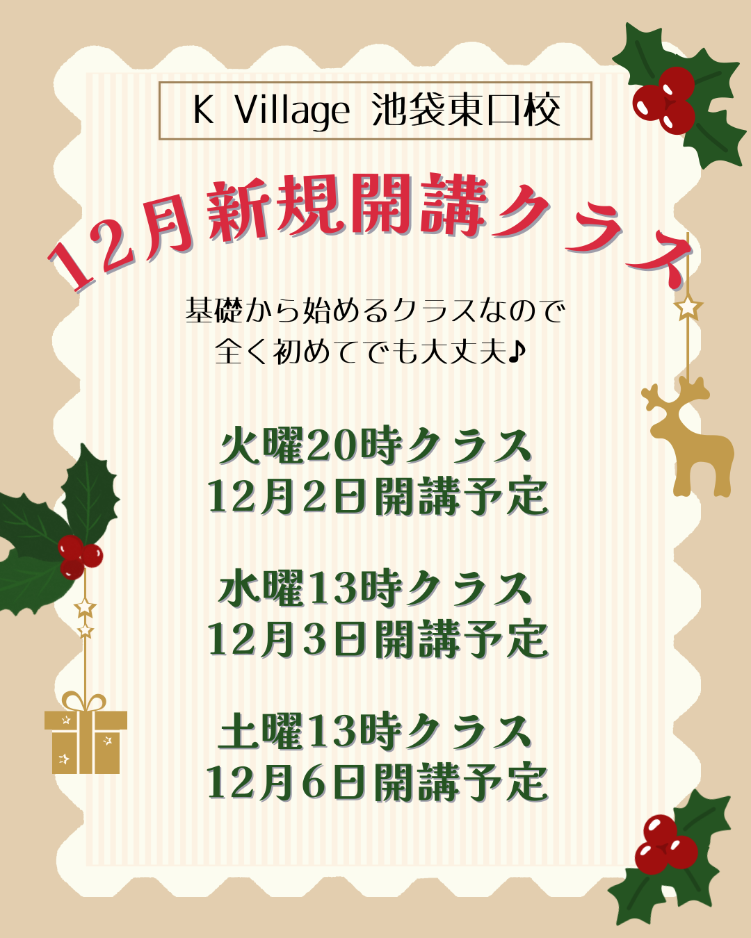 ・・募集中の新規開講クラスはコチラ!・・