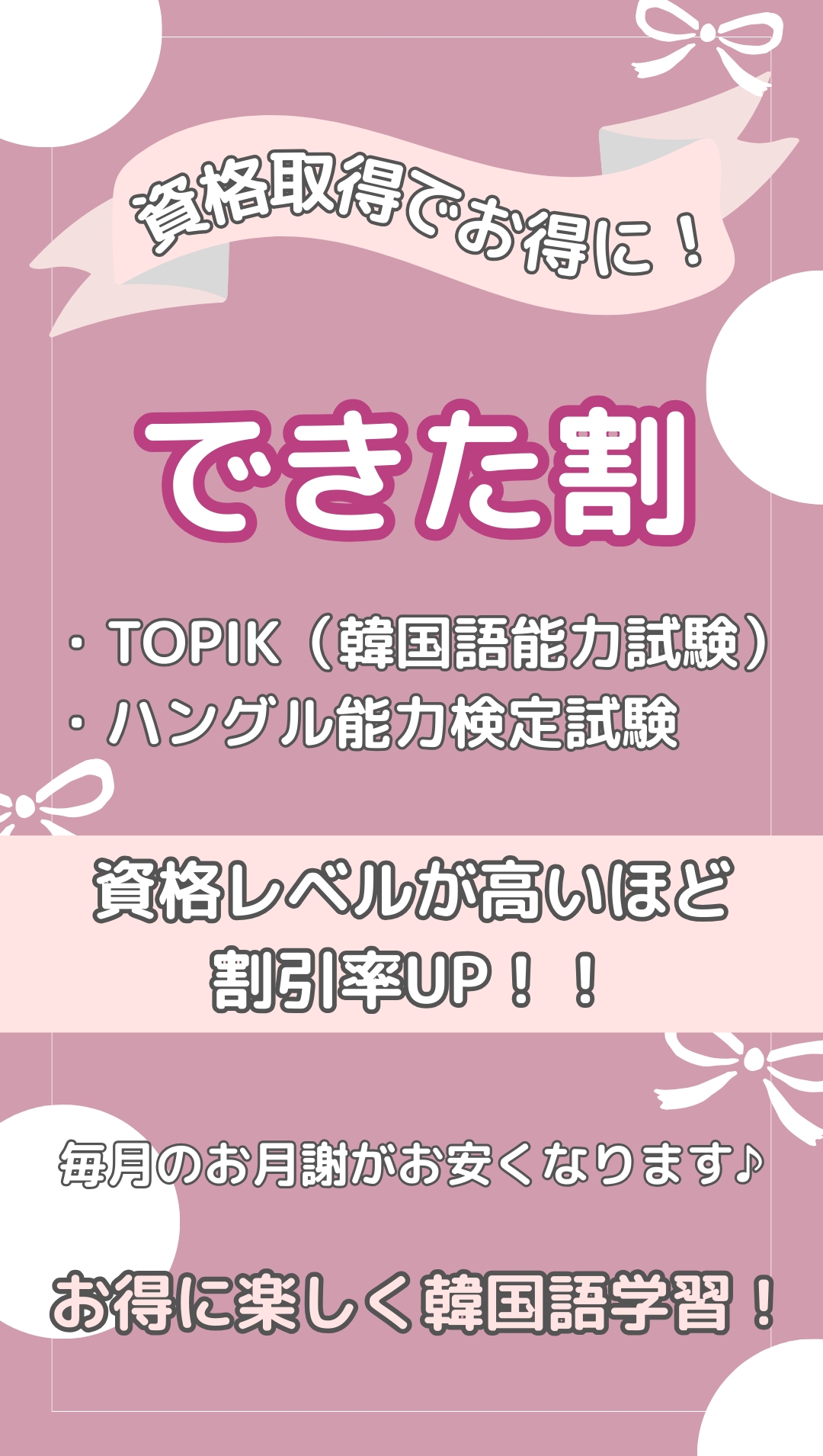 • 資格取得でお得に韓国語学習!
