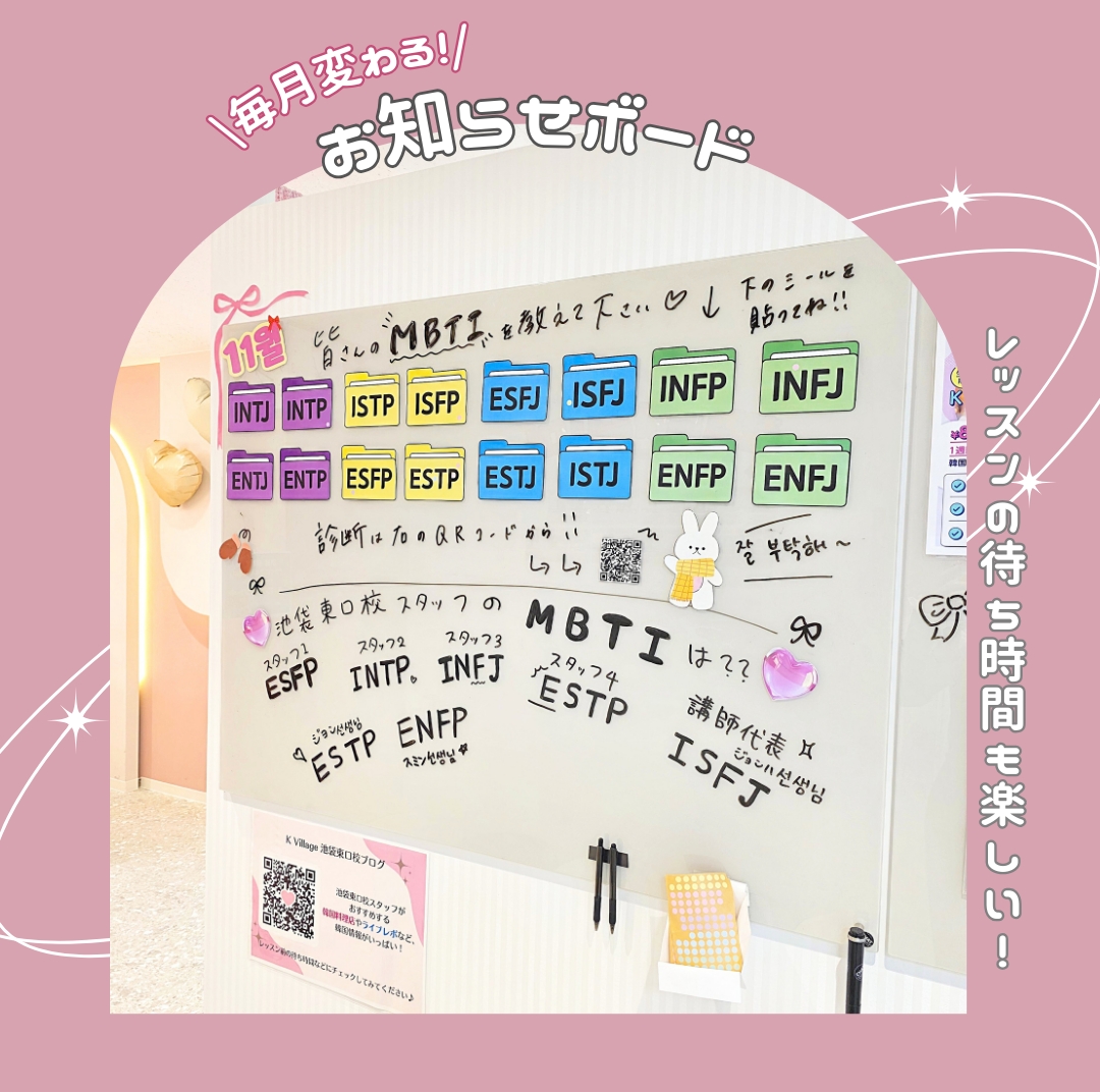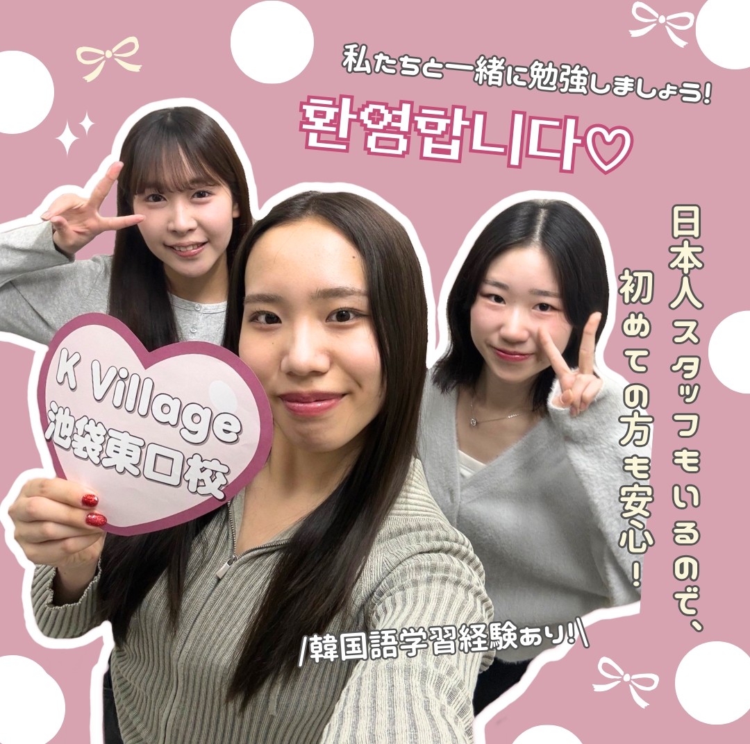 池袋東口校では、韓国出身のネイティブ講師が皆様の韓国語学習をサポートします!日本語にも堪能で、日本人がつまずきやすいポイントをわかりやすく丁寧に教えています。日本人スタッフは全員韓国語可能!レッスンについてのご不明点や推しやドラマの話など…お気軽にお申し付けください❤
