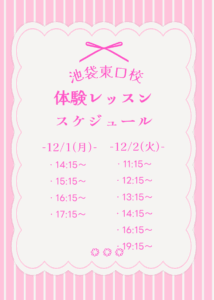 ・・ 体験レッスンご案内可能日・・