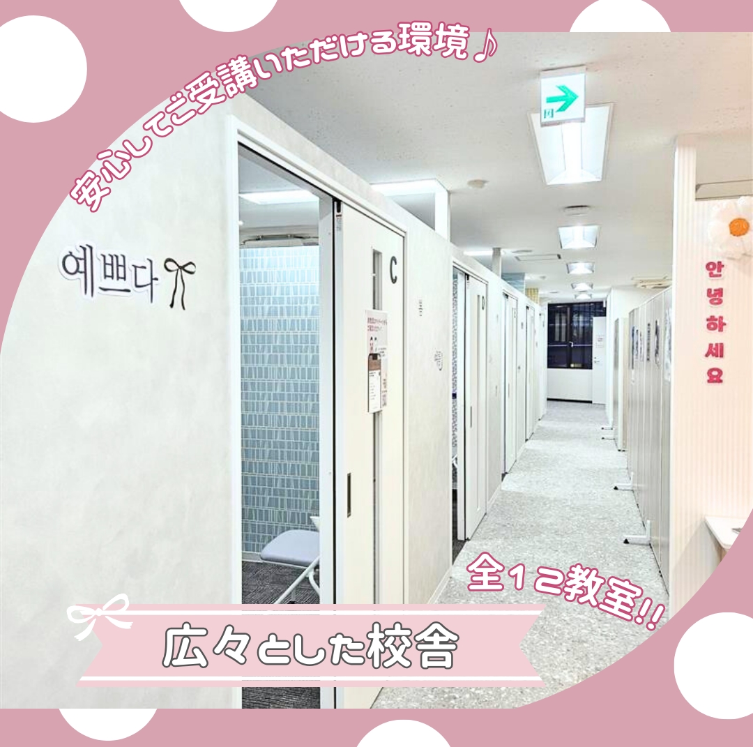 明るく綺麗な新校舎で楽しく韓国語学習♪快適にご受講いただけるよう綺麗な校舎で皆様をサポート