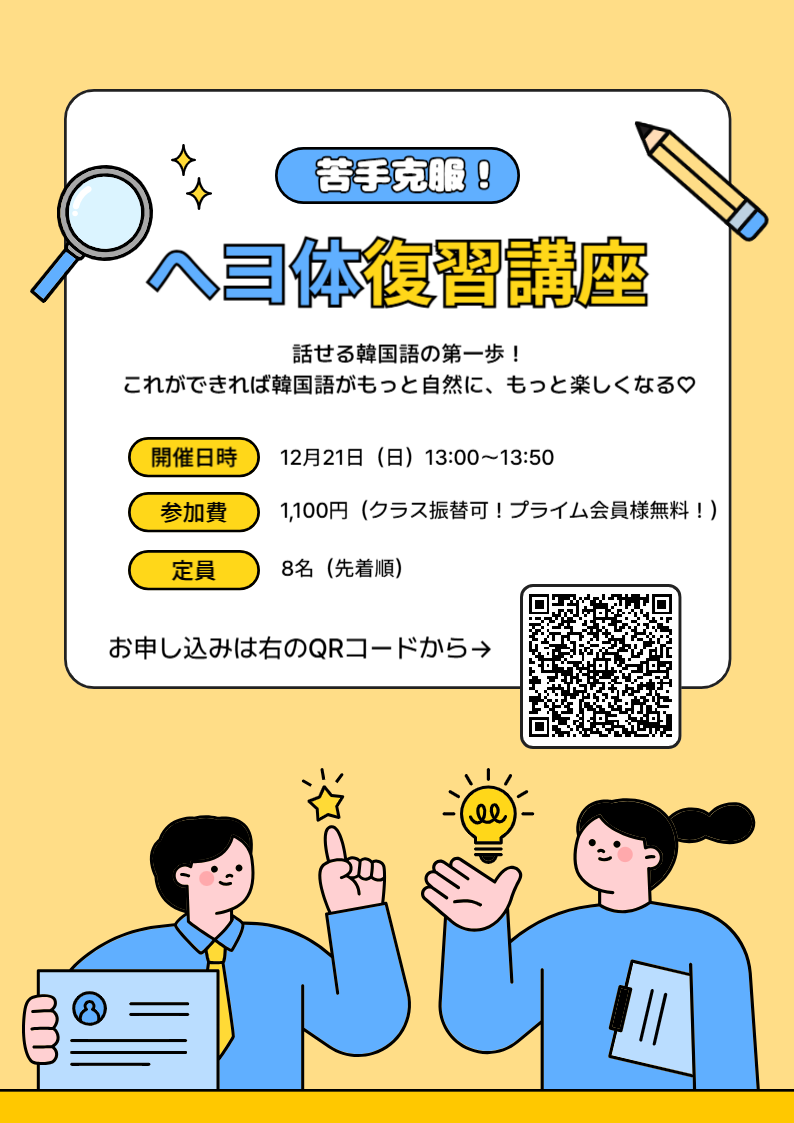 へヨ体は、話せる韓国語の第一歩!これが出来れば韓国語がもっと自然に楽しくなります♪