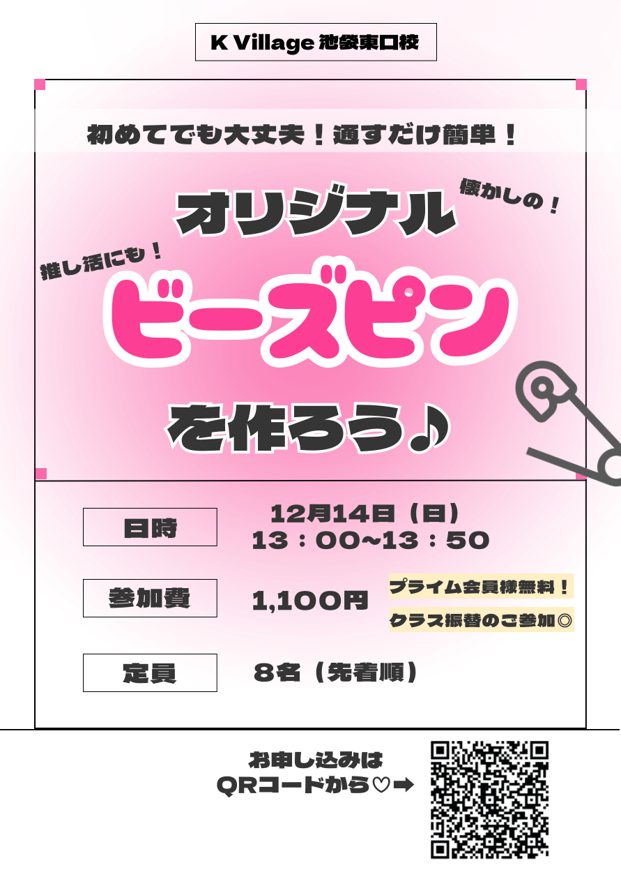 推しの話、韓国の話など、50分間皆さんと楽しくお話ししながら可愛いビーズピンを作りたいと思います!