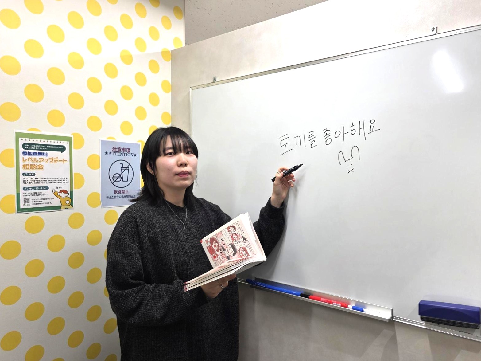 所属校舎 K Village 韓国語 池袋東口校 出身地 保寧(ボリョン) 出勤曜日 月 火 水 土 日 趣味 K-POP・アイドル ファッション レッスンスタイル 会話・発音重視 例題多めで文法マスター レッスンモットー いつも笑顔で楽しく♪ できるまで何度も教えます 保有資格・スキル JLPT N2, ドラム イェジン先生 からの一言! 日常の中に韓国語の楽しさを取り入れて、一緒にワクワクする時間を過ごしましょう! スタッフが知るここだけの話! 動物、カフェ、写真を撮るのが好きです^^