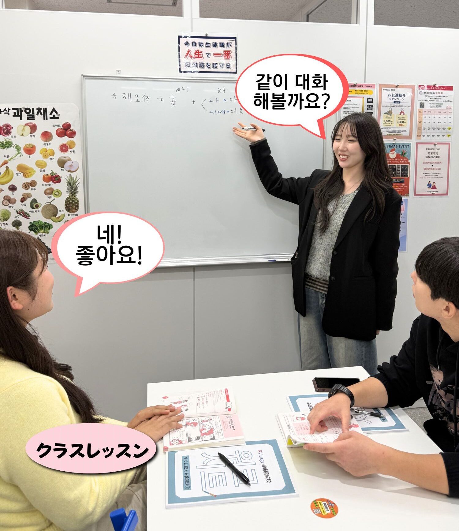 上達のスピードは人それぞれですが、クラスレッスン・プライベートレッスンともに約半年~1年で簡単な日常会話ができるようになります!もちろん語学なので個人差はありますが「楽しく継続すること」ができれば、どんな方でも韓国語を話せるようになりますのでご安心くださいませ♪