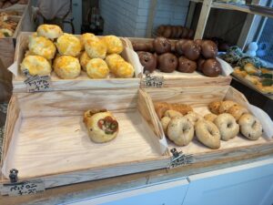 作り上げています!特にアルムベーグルの特徴は、生地を作る時点で一般のベーグルよりも水分量を多くしているので、よりもちもちでふっくらとしたベーグルに仕上がっているんです!