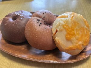 塩チョコは岩塩が入っていて、甘じょっぱい味とふわふわもちもちのベーグルが相性抜群でした💕