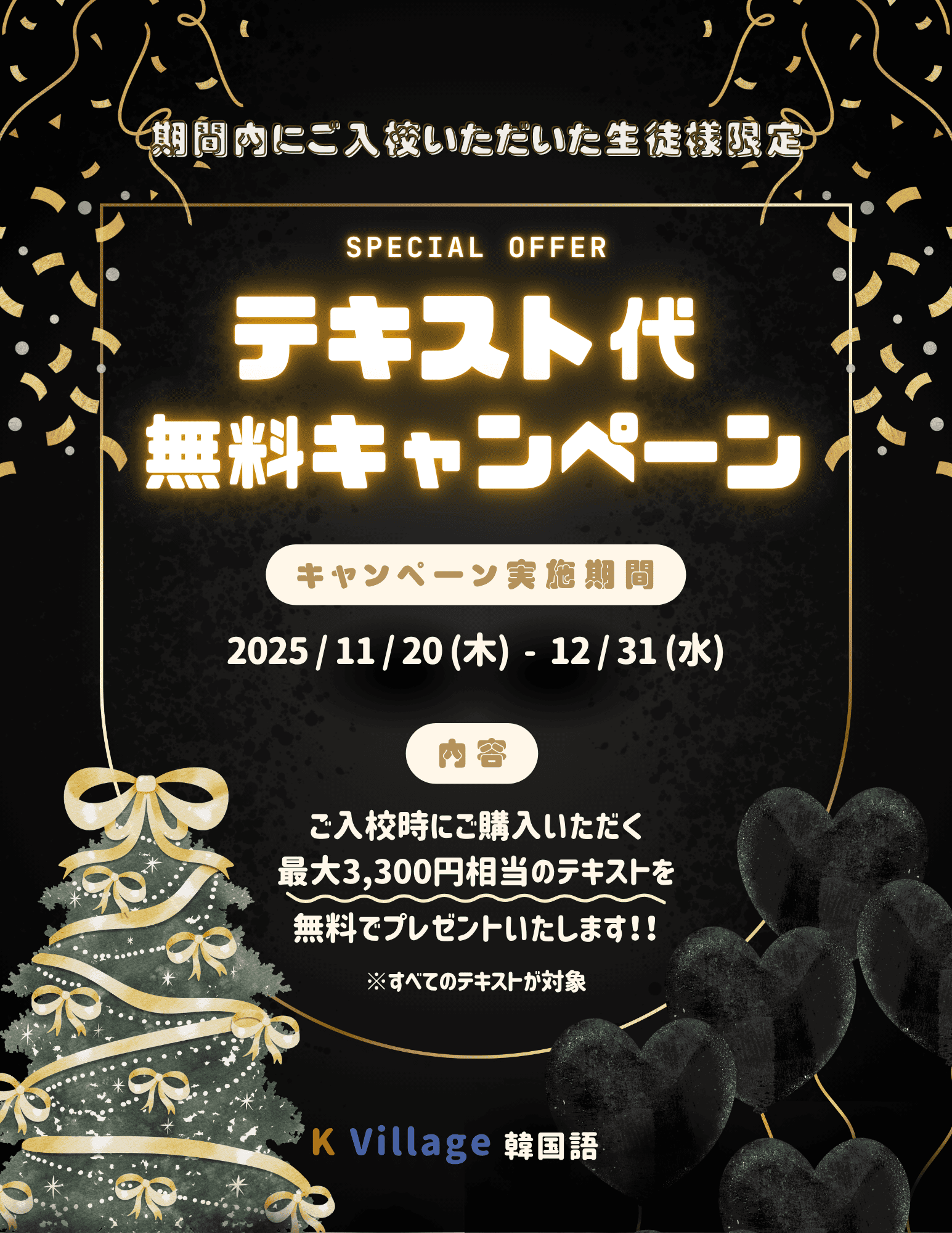 「来年からやろう」より、今から始めて差をつけよう✨ 11月20日から年内いっぱいのご入校で、なんとテキスト代(最大3,300円分)が無料!