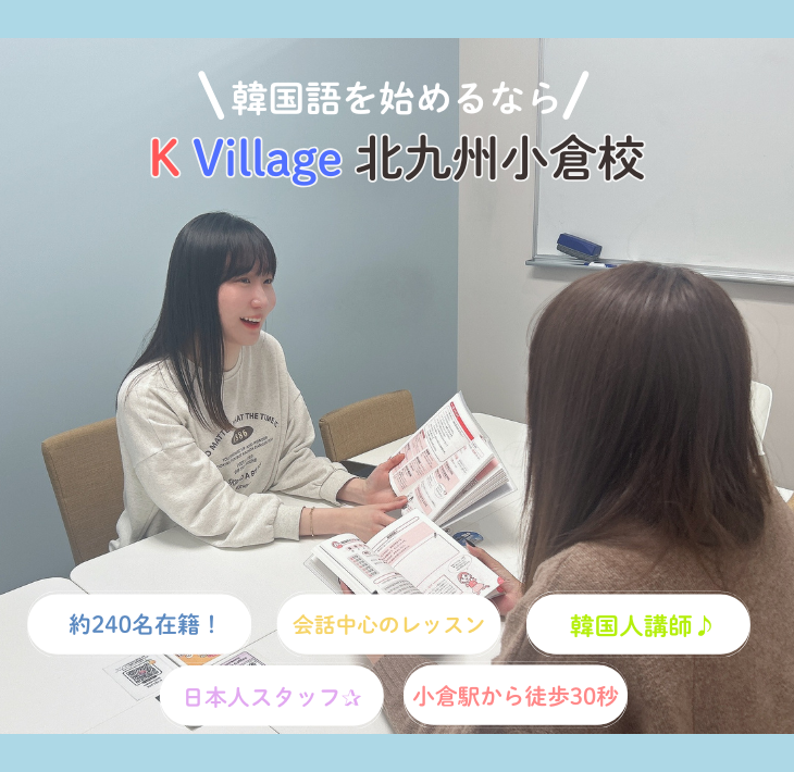 「本格的な韓流文化を感じながら北九州・小倉で韓国語を学びたい!」そんな方におすすめなのは、日本最大級の韓国語教室 K Village 韓国語 北九州小倉校