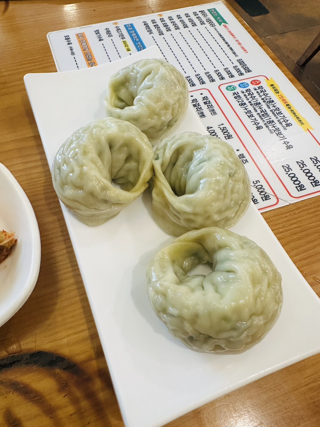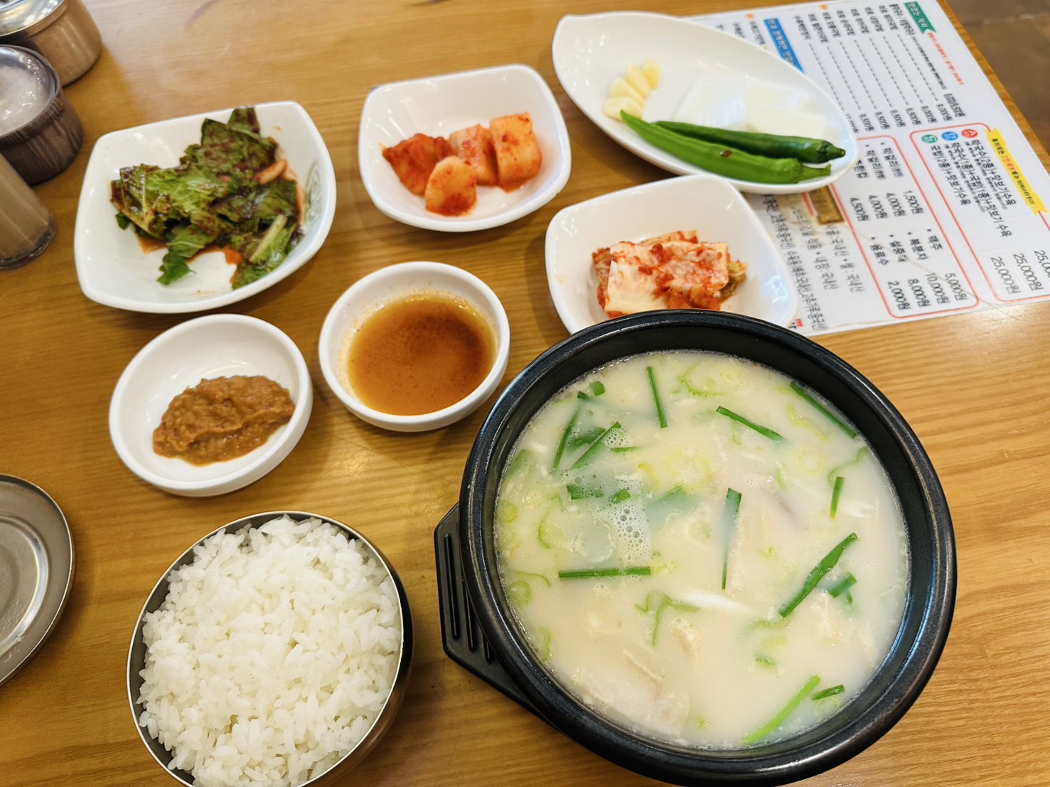 今回は돼지국밥(テジクッパ)と수제고기만두(手作り肉餃子)を頼みました!