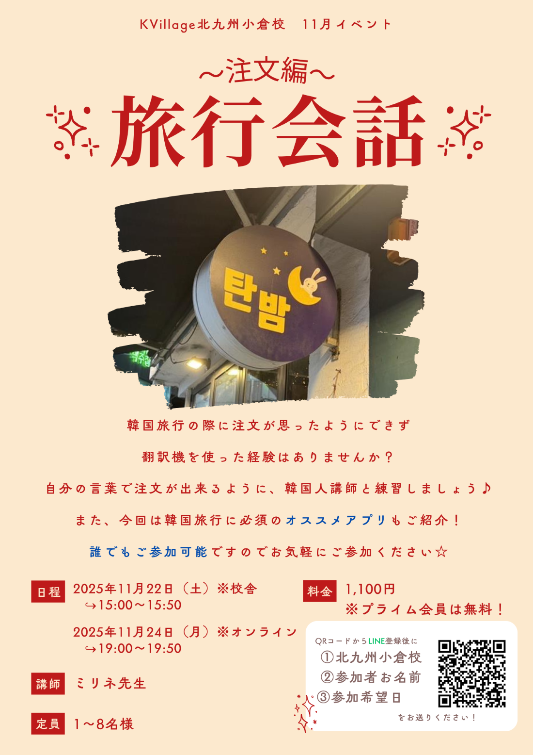 【2025年11月イベント】旅行会話~注文編~を開催いたします♪