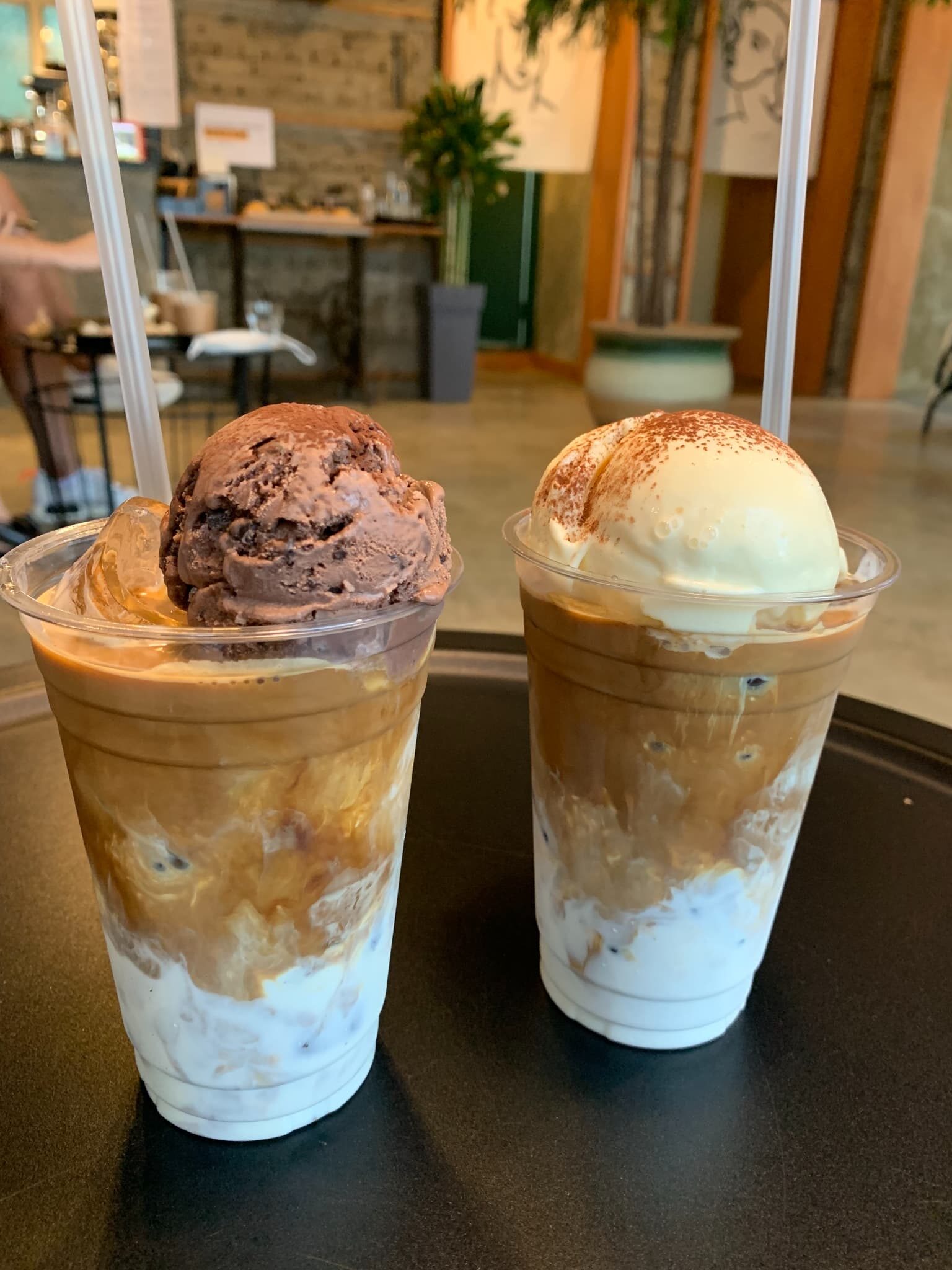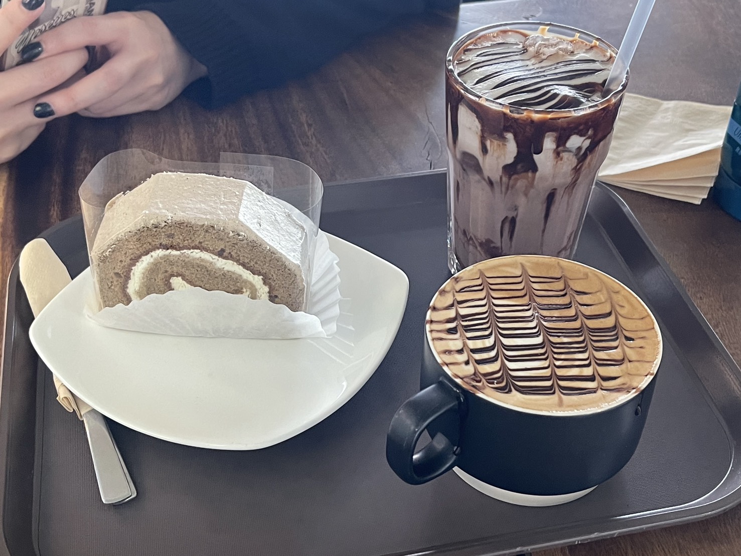 ICEチョコレートラテ・HOTカフェモカ・アールグレイロールケーキを注文しました🌟