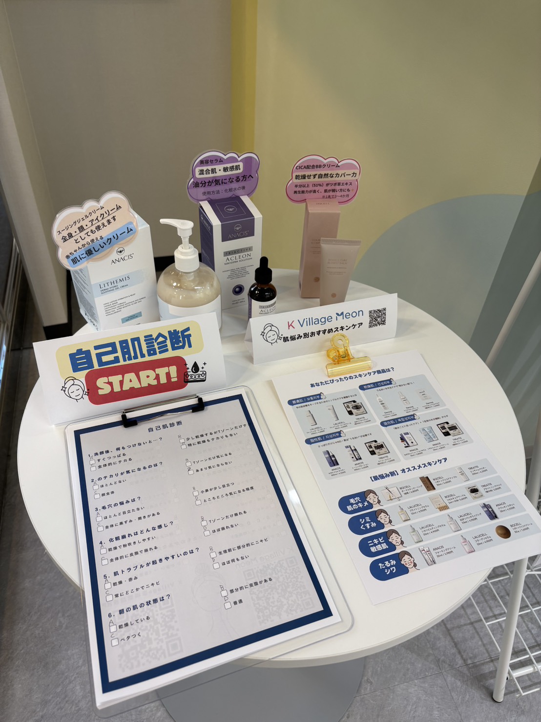 現在、京橋駅前校では自己肌診断・サンプルを置いております✨