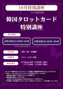 名古屋駅前校のブログ | 各回6名限定!韓国タロットで未来を占う 10月特別講座のお知らせ